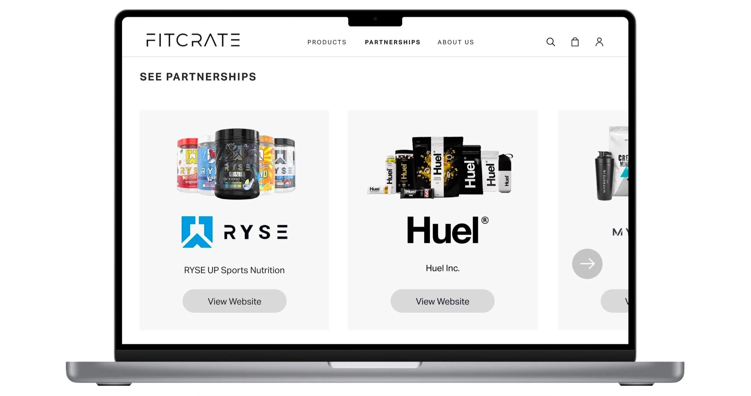 This page allows users to view the different partnerships that Fitcrate partners with to gain a higher level of trust in Fitcrate’s selection of products. The user can scroll through the carousel and view more information about each company.