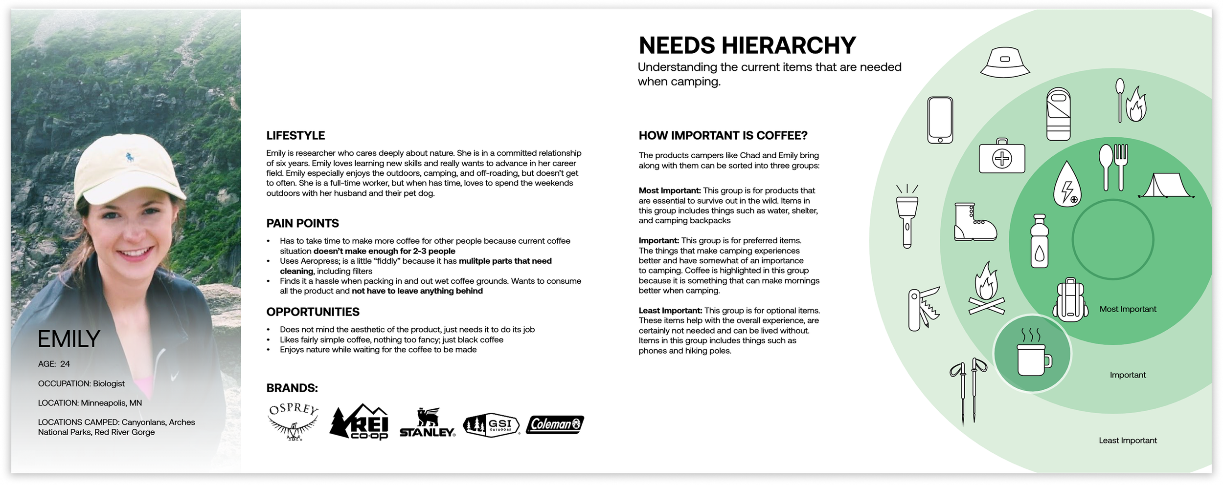 This project started with user and market research to develop a coffee maker for recreational campers. Although I had little to no prior knowledge about camping and coffee, I embraced the challenge and learned both areas to deliver a strong final product.