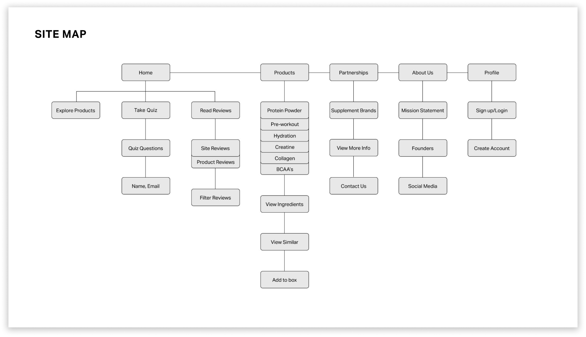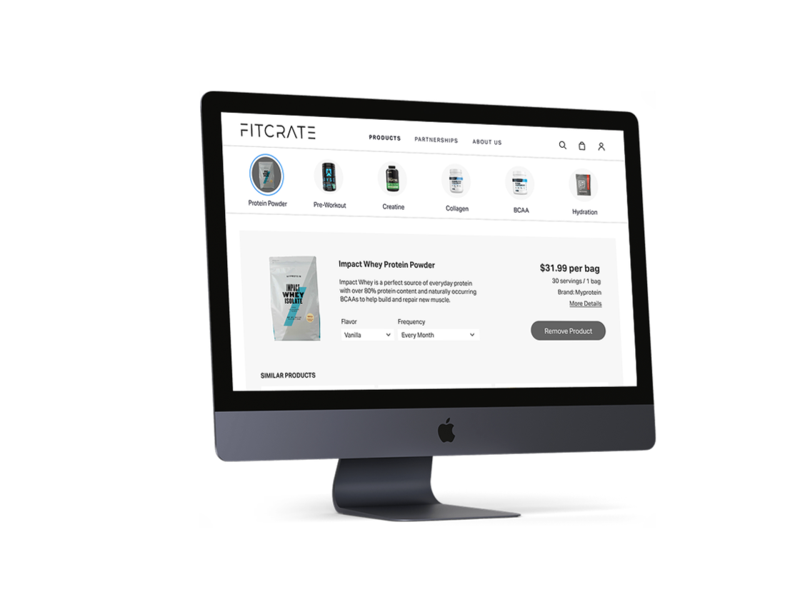 These insights led me to making sure that Fitcrate would have personalization, provide trustworthy and knowledgeable information, and offer a wide variety of quality products. These criteria would be represented in features of a questionnaire, product customization, and reviews and partnerships with different supplement brands and companies.