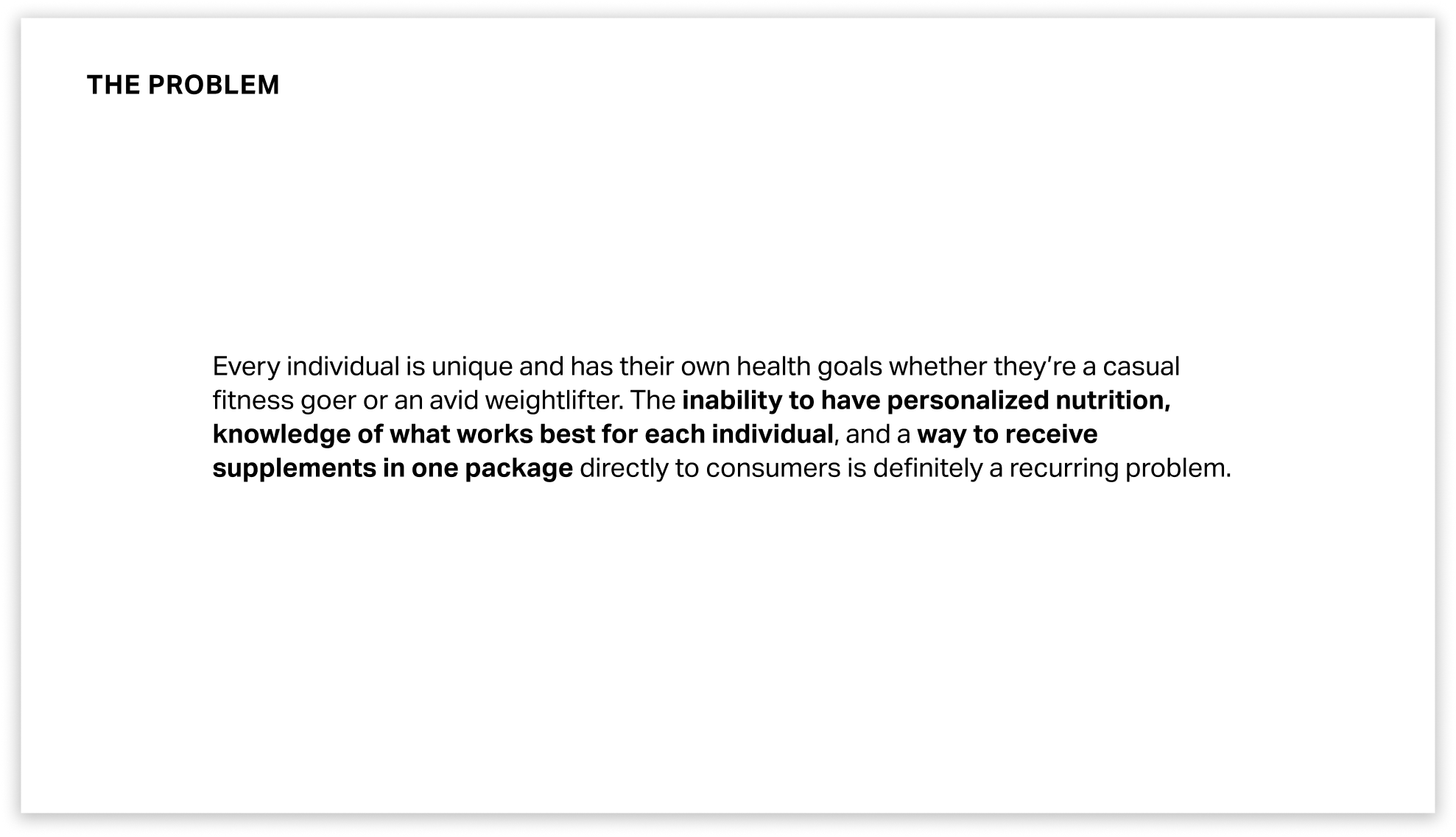 A website designed for beginner and intermediate fitness goers who want to know what supplements are best for them, personalize their products, and select from a wide variety of supplements.